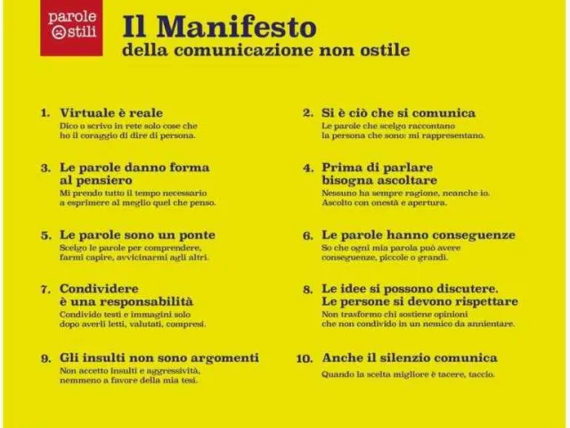 Al centro della manifestazione ci sarà il Manifesto della comunicazione non ostile, carta che raccoglie i 10 principi proposti e votati dalla Rete negli scorsi mesi per ridurre, arginare e combattere i linguaggi negativi che si propagano facilmente in Rete, e che era stata presentata proprio alla Presidente della Camera Laura Boldrini e che è stata subito adottata in molte scuole italiane.