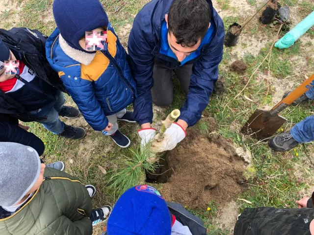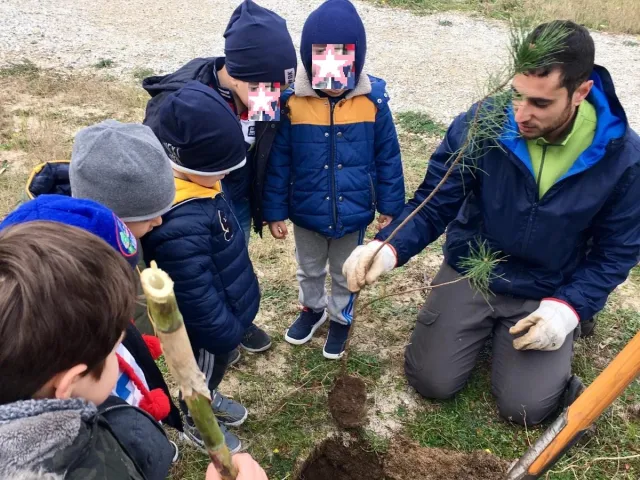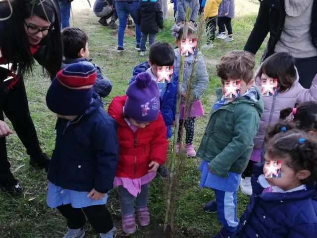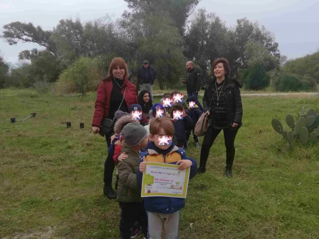 Allargando gli orizzonti territoriali della scuola, i bambini hanno partecipato alla piantumazione di alcune specie di pino, nell'ambito del progetto di riqualificazione della pineta, situata nell'area prospiciente alla scuola stessa. L'esperienza, finalizzata al rispetto e alla valorizzazione dell'ambiente, si è svolta in un clima di convivialità relazionale ed è culminata nella consegna, per ciascuna sezione, di un attestato di partecipazione, che ha consacrato tutti i partecipanti "amici degli alberi".