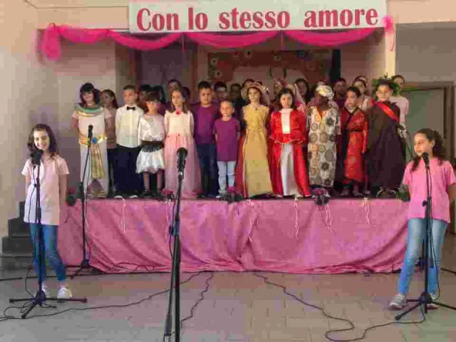 "Con lo stesso amore è il titolo del recital del nostro plesso. Gli alunni hanno dedicato questo spettacolo a tutte le mamme. Una piccola rappresentazione, in cui le bambine, hanno ricoperto il ruolo di "mamme" di varie epoche e vari Paesi del mondo. Tutti gli alunni hanno poi continuato con poesie, balletti e canzoni.