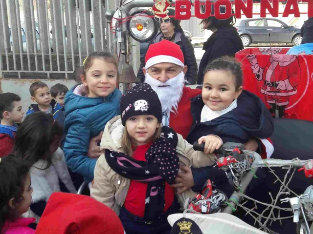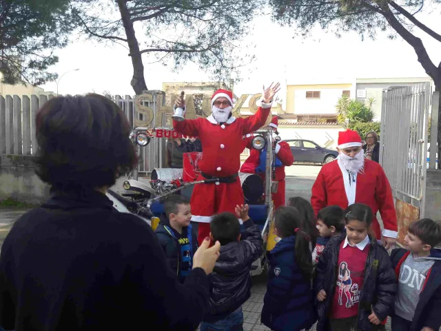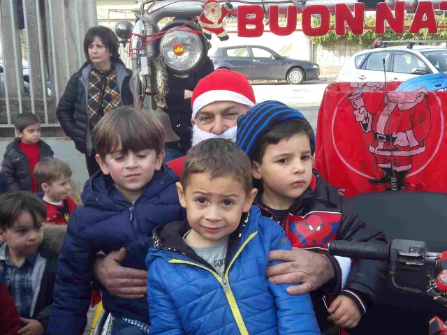 Mattinata di festa con sorpresa per i bambini della scuola dell' Infanzia "Figliuzzi". Babbo Natale, infatti, è arrivato a scuola in moto e ha distribuito caramelle a tutti i bambini.
