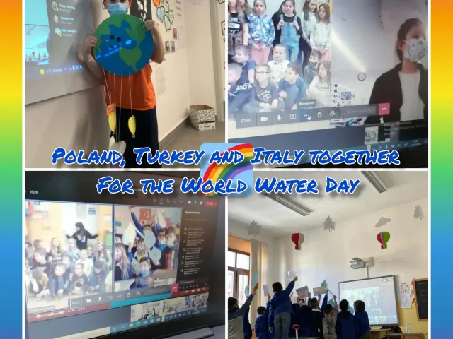 elemento sinonimo di Vita, che noi, in questo particolare momento storico abbiamo voluto celebrare insieme ai compagni della Turchia e della Polonia nella cui classe erano presenti degli alunni ucraini particolarmente emozionati alla vista della loro,Bandiera.
