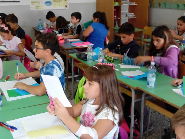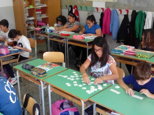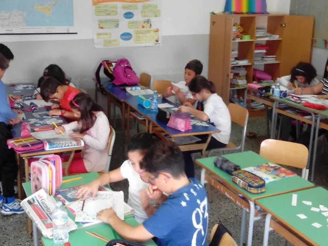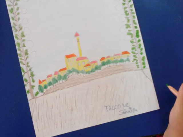 I bambini della VA hanno "giocato" a scomporre un'opera d'arte di Ivan Rabuzin, il Vllaggio dei miei sogni.