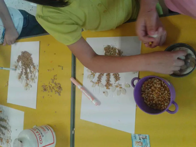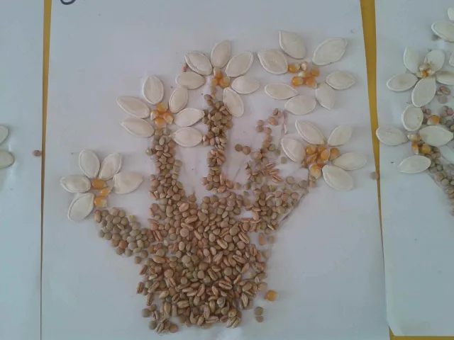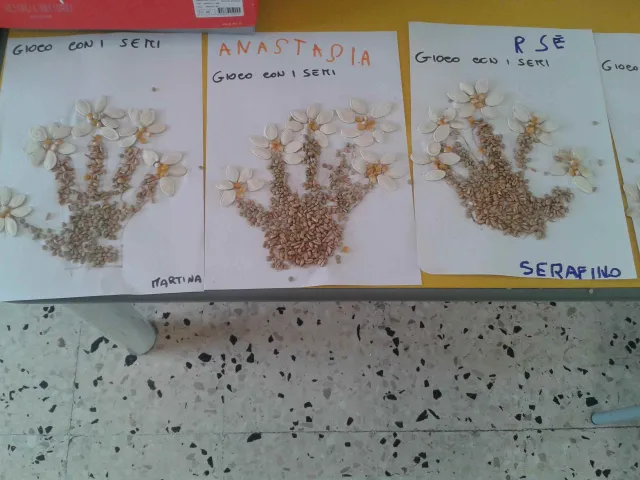 I bambini della II B della scuola dell'infanzia "Figliuzzi" si sono divertiti a creare, utilizzando semini di farro, mais, lenticchie e zucca, un bellissimo vaso pieno di fiori.