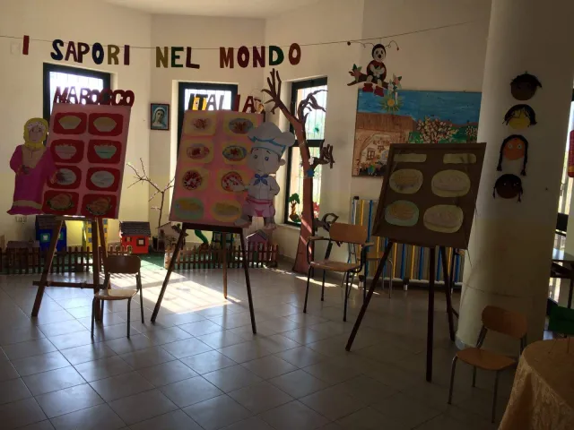 Il Progetto educativo "I Sapori Nel Mondo " ha accompagnato I bambini della Scuola dell'Infanzia del Plesso "Bosco" in un viaggio nel mondo dell'alimentazione legato all'esperienza quotidiana e alla scoperta di nuovi sapori. Tale progetto ha avuto l'obiettivo di renderli partecipi ed educarli all'interculturalita' attraverso la conoscenza di sapori e di odori di cucine internazionali permettendo loro così di allargare le proprie abitudini alimentari e sperimentare nuovi gusti. Abbiamo voluto rappresentare un Paese del Nord Africa, precisamente il Marocco, visto che da molti anni ormai molte persone di questa nazionalità sono integrati e vivono nella nostra regione. Attraverso l'osservazione giornaliera del pranzo che si consuma a scuola e dei cibi consumati a casa, i bambini hanno imparato a riflettere sulle proprie abitudini alimentari e si sono confrontati con la cultura marocchina.