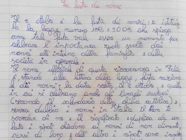 Il 2 ottobre è la Festa dei nonni e, anche quest'anno, i bambini della classe VA hanno voluto festeggiare queste figure insostituibili e importanti con un biglietto, creato da loro, e una poesia.