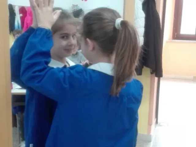 Gli alunni delle classi seconde C e D, partendo da un'esperienza diretta, non solo mentale ma anche corporea, hanno studiato la simmetria attraverso attività laboratoriali ed insieme hanno formulato ipotesi e osservato le relative conseguenze. L'opportunità di avere un'esperienza tattile, non solo visiva, semplice nell'esecuzione, è stata accolta da tutti con entusiasmo.
