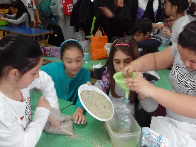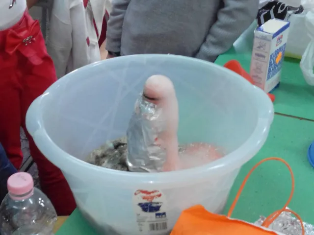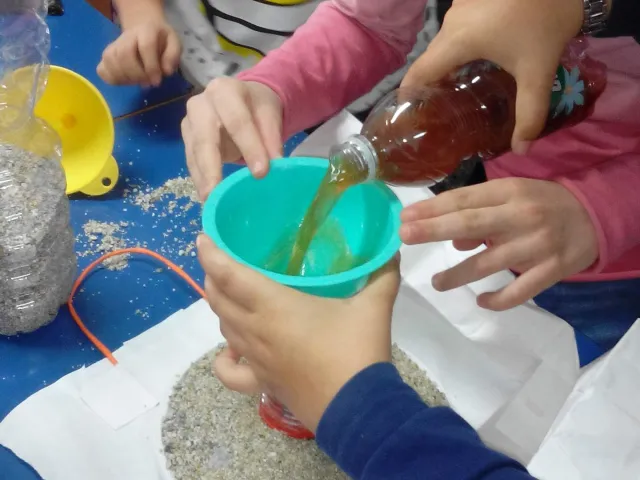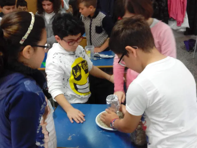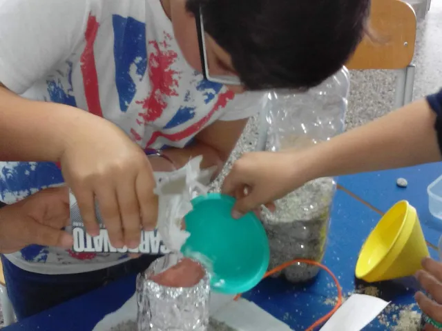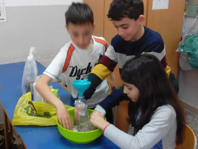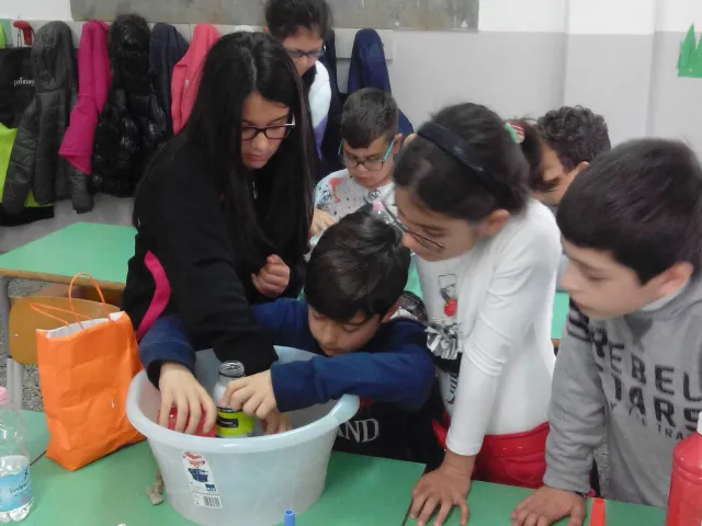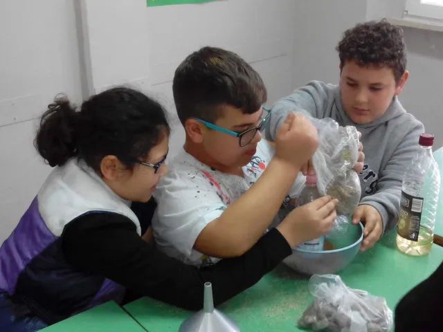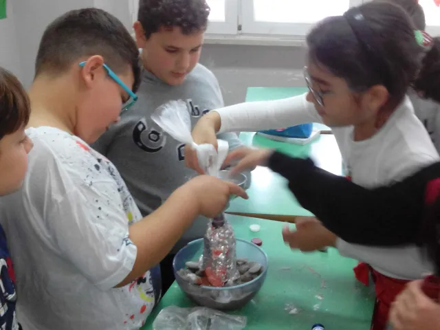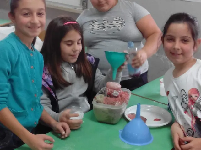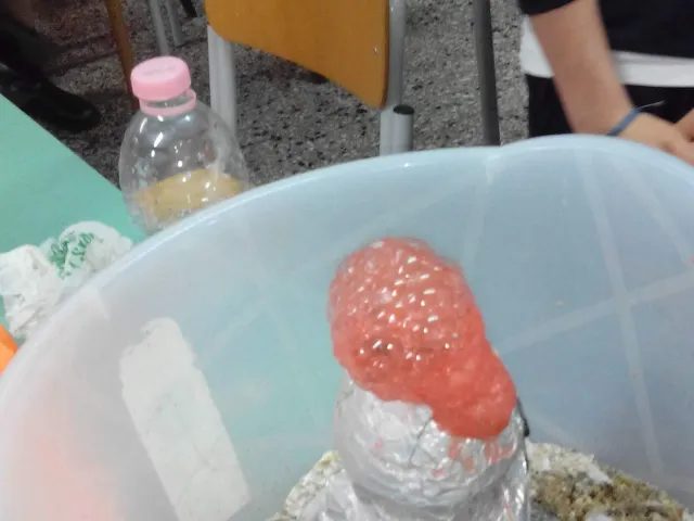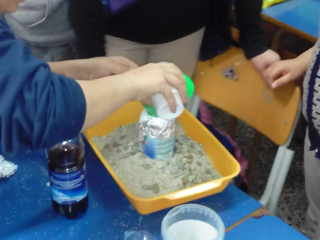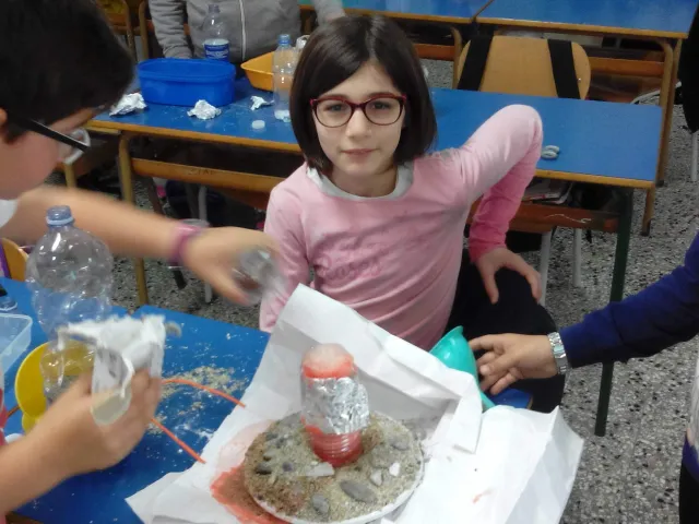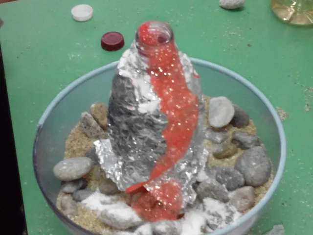Incuriositi da queste montagne particolari, abbiamo riprodotto dei piccoli vulcani e, utilizzando semplicemente bicarbonato, aceto e colorante, gli alunni della classe IV A hanno simulato la fuoriuscita della lava dal cratere e larelativa colata lungo i fianchi del vulcano.
