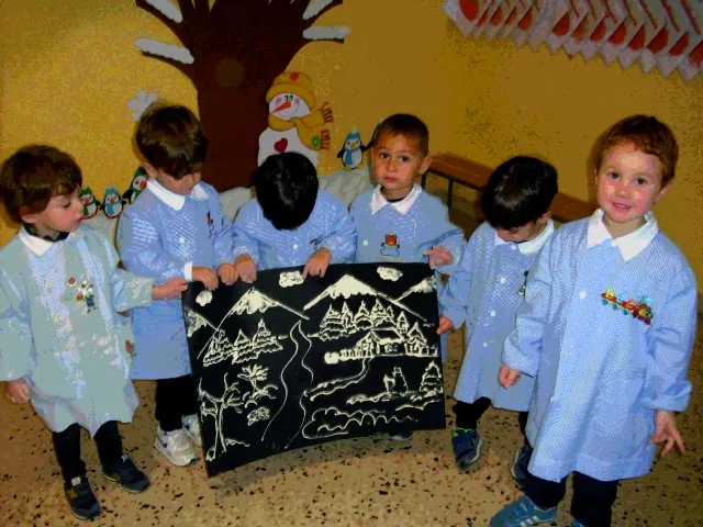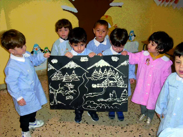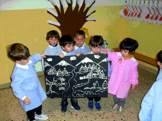 Laboratorio di gruppo: I bambini della sezione degli Orsetti 1° B della scuola dell’infanzia del plesso “ Figliuzzi” San Ferdinando, aiutati dalla loro maestra Martina Corrao, con molto entusiasmo e creatività, hanno realizzato il loro cartellone dell' inverno utilizzando colla e farina.