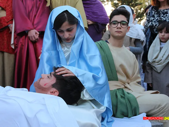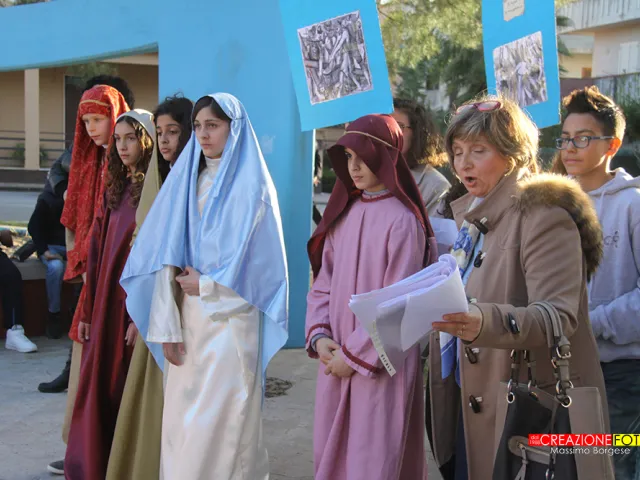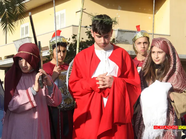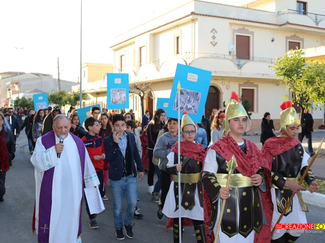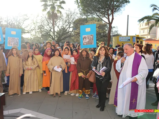 Con una suggestiva manifestazione religiosa degli alunni della Scuola Primaria “Carretta”, e Secondaria di 1° “Vizzone” di San Ferdinando (RC), si è svolta Venerdì 27 Marzo, la seconda edizione della “Via Crucis Vivente”. Con partenza dalla Scuola primaria, hanno sfilato per le vie di San Ferdinando il Dirigente scolastico Nicolantonio Cutuli, i Docenti, gli Alunni, i Genitori e tanti fedeli della Parrocchia “San Ferdinando Re” guidati dal vice parroco don Mario Marino. Più di venti attori-figuranti in costumi d’epoca, rappresentati dagli allievi della scuola, coinvolti a vario titolo nella rappresentazione biblica. Nelle 14 stazioni della Via Crucis, i ragazzi hanno messo in scena i vari momenti della Passione di Cristo, culminata nella Crocifissione in largo Calvario, coinvolgendo l’intera comunità di San Ferdinando a partecipare con riflessioni, preghiere e canti.
