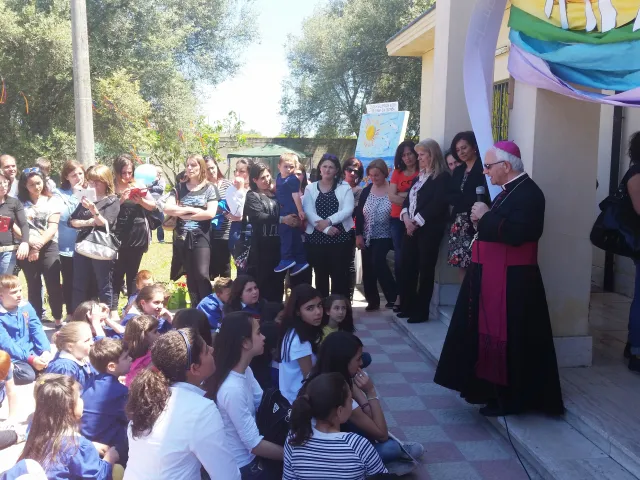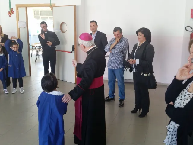 Su invito della nostra Scuola Lunedì 4 maggio 2015 S.E. il Vescovo Domenico Milito ha visitato le scuole della frazione "Bosco" di Rosarno. Mons. Milito si è intrattenuto con gli alunni della Scuola Primaria e Secondaria di I grado parlando dell'Amicizia. Successivamente l'intera comunità si è ritrovata nel giardino della Scuola dell'Infanzia dove gli alunni piccoli e grandi hanno eseguito rappresentazioni e brani musicali sul tema dell'Amicizia. A seguire un luculliano buffet in giardino preparato dalle Mamme degli alunni. Hanno partecipato all'evento il Dirigente scolastico dell'I.C. "Scopelliti-Green" Prof. Giuseppe Eburnia, l'Assessore del Comune di Rosarno De Maria e l'Assessore regionale De Gaetano.